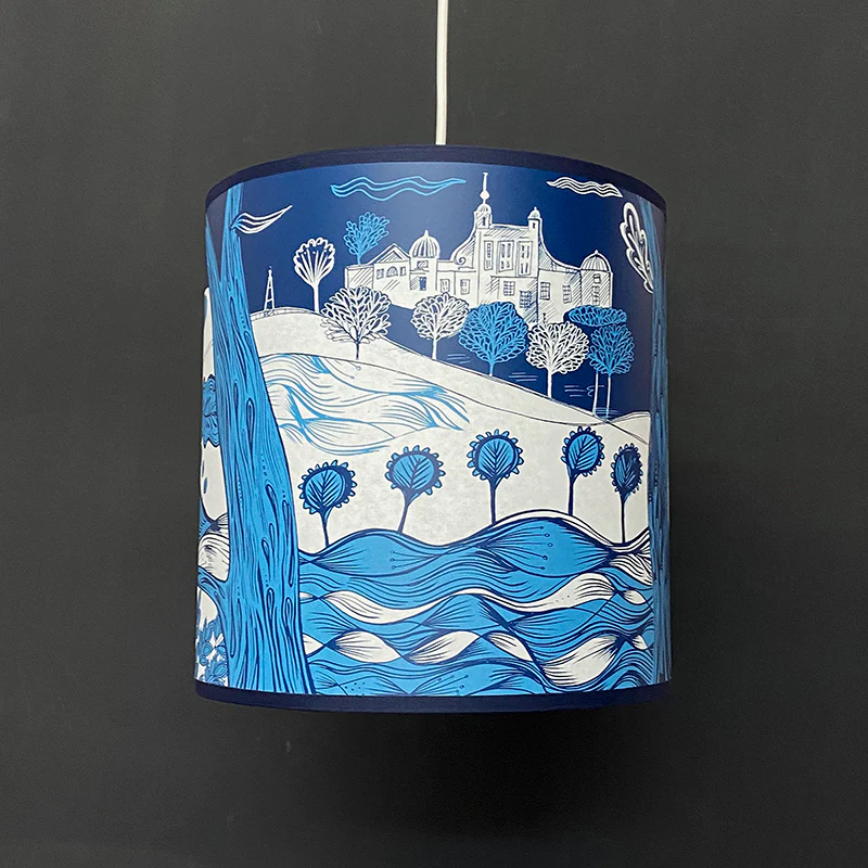 A worried owl watches in the moonlight. Richly coloured or in beautiful metallic gold, this shade features the historic Greenwich Observatory which you can see if you have a look at the views of the large red, green and blue owl shades.