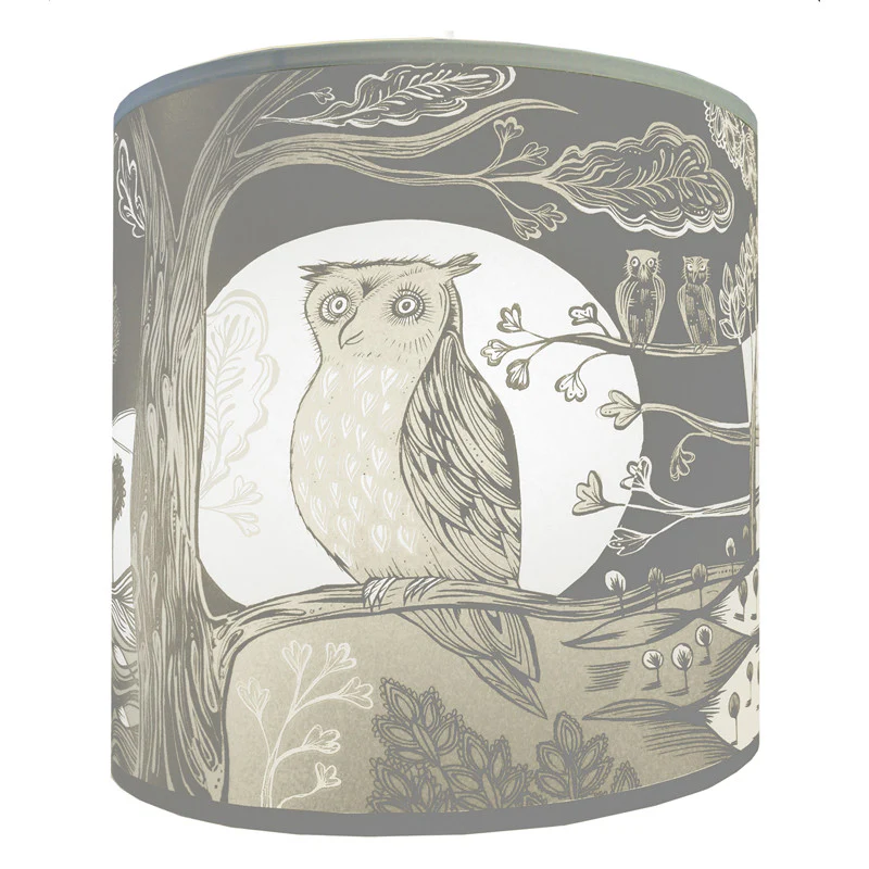 A worried owl watches in the moonlight. In soft grey and cream, the other side of this shade features the historic Greenwich Observatory which you can see if you have a look at the views of the large red, green and blue owl shades.