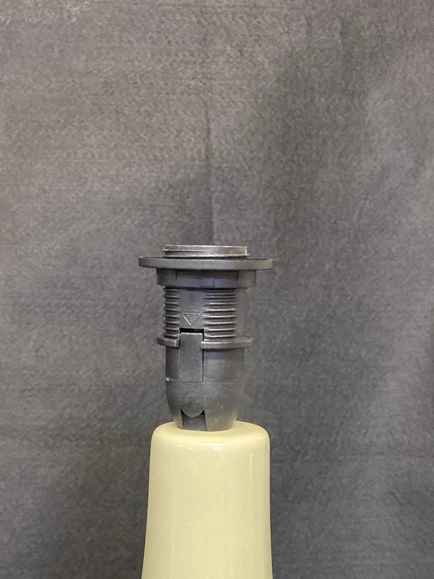 These lamp bases are made from ceramic decorated with beautifully drawn plants, this one in a pale glaze with a hint of green. Its a second because of small faults in the glaze, and mis aligned leaf prints. The bulb holder is very slightly off centre but this does not affect it's function and your shade will be perfectly straight. (see detail pics).